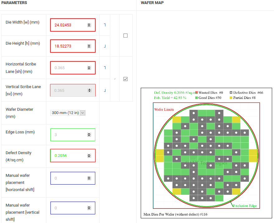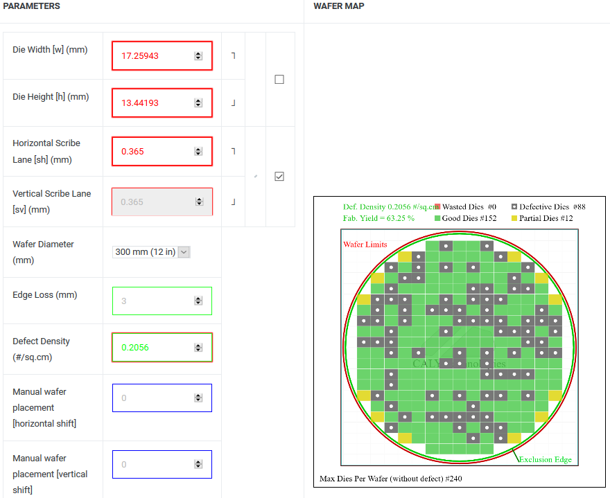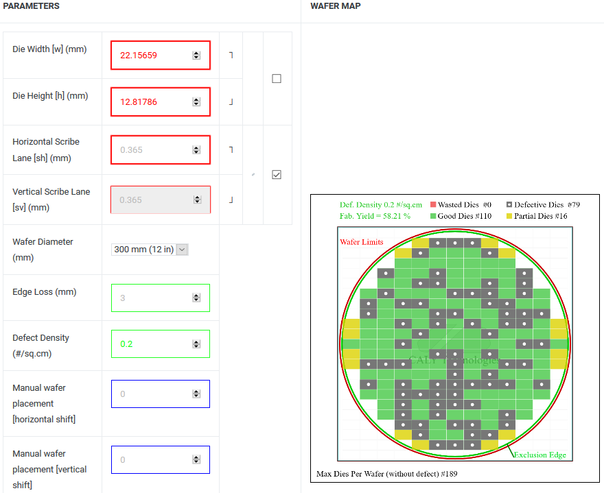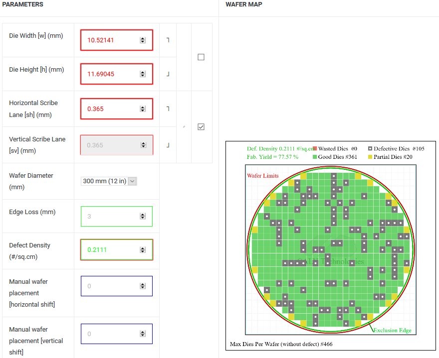 - Edge Loss : 3mm / Scribe Lane : 0.365mm (TSMC Gross die per wafer 역계산한 값) 를 전제로 한다.