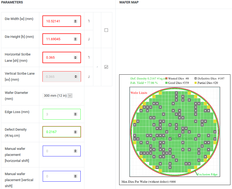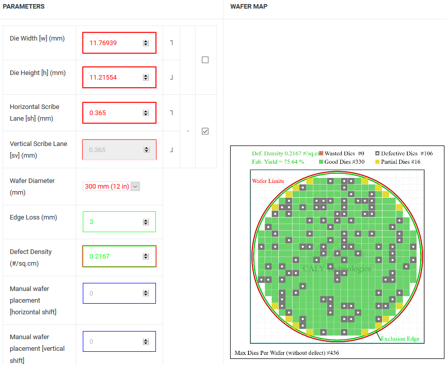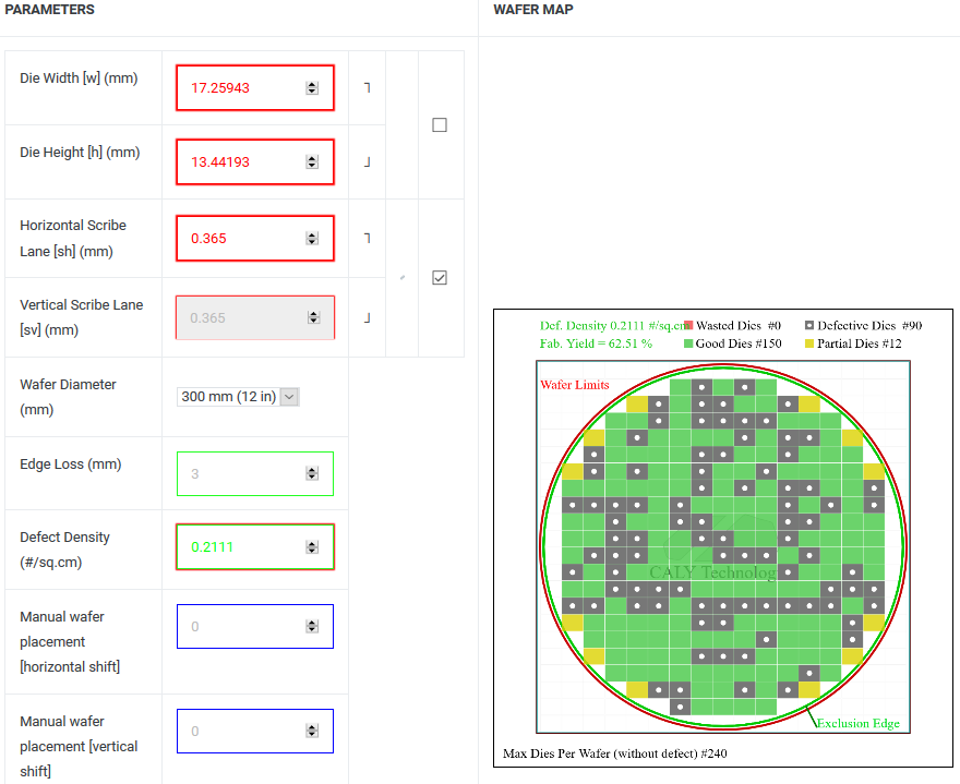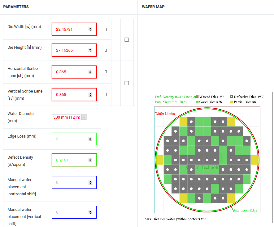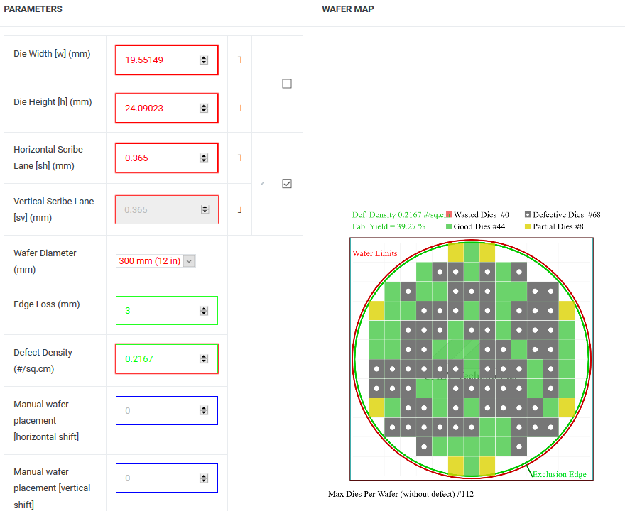 - Edge Loss : 3mm / Scribe Lane : 0.365mm (TSMC Gross die per wafer 역계산한 값) 를 전제로 한다.