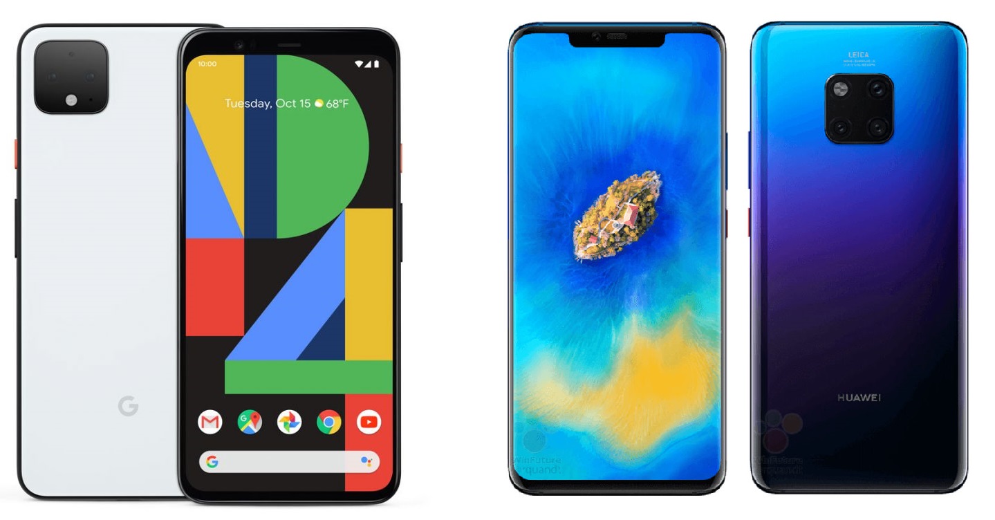 Google Pixel 4 & Hawei Mate 20 그냥 갤럭시S10이나 갤럭시 노트10 처럼 가로나 새로로 배열했으면 문제가 되었을까? 그래서 대충 포토샵으로 간단하게 합성해 봤다.