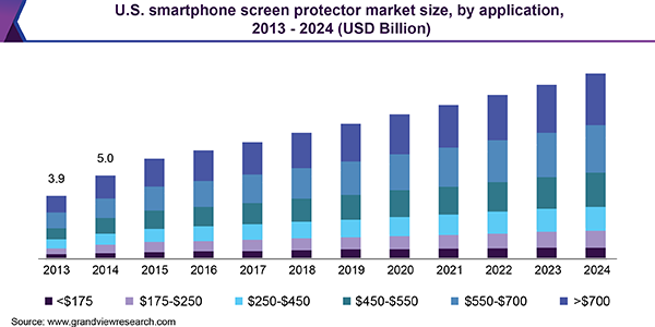 스마트폰 판매 가격대 비율 전망 (출처: grandviewresearch)