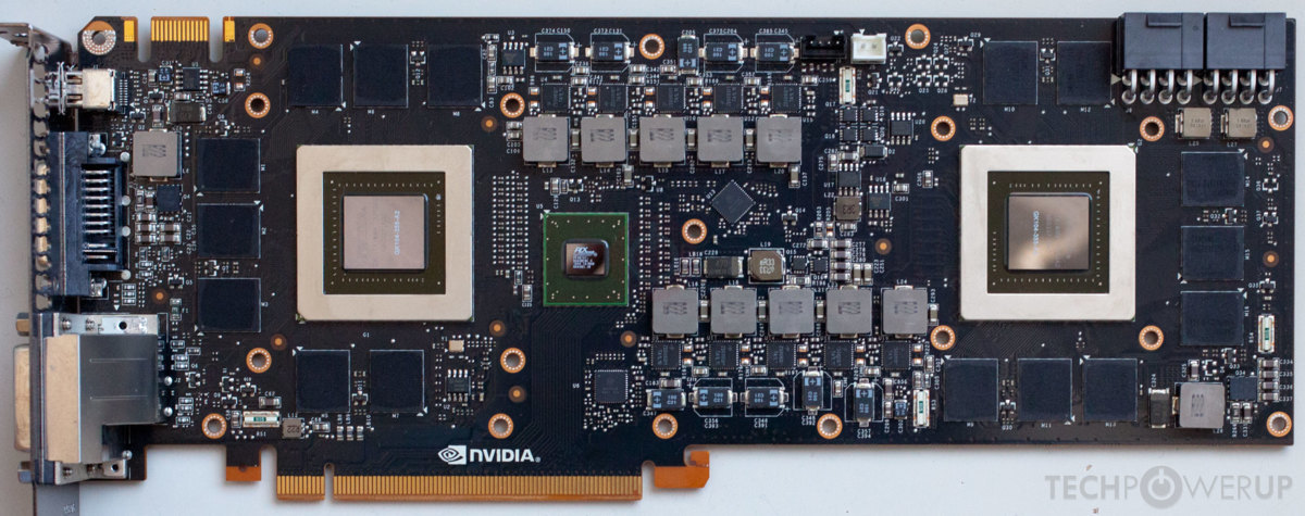NVIDIA의 GTX690, 그래픽 칩셋을 2개 박은 것을 볼 수 있다 by TechPowerUp 2. 그 다음은 무엇이냐? 듀얼GPU라는 것을 만들어 내었다. 하나의 그래픽 카드에 2개의 그래픽 칩셋을 박아 넣는 것이다.