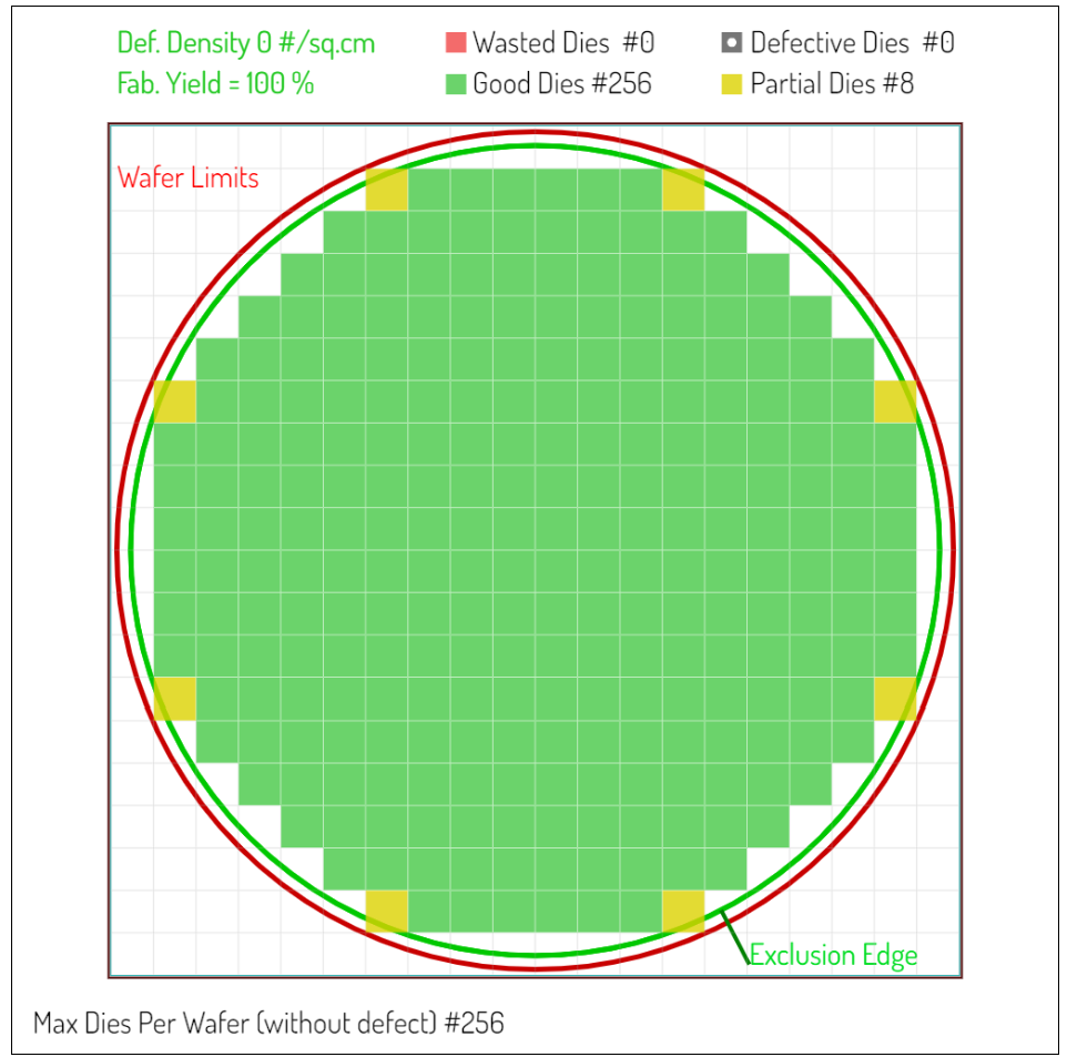 1. 칩셋 크기가 15mm x 15mm 일 경우, 웨이퍼 하나에 256개를 만들 수 있다